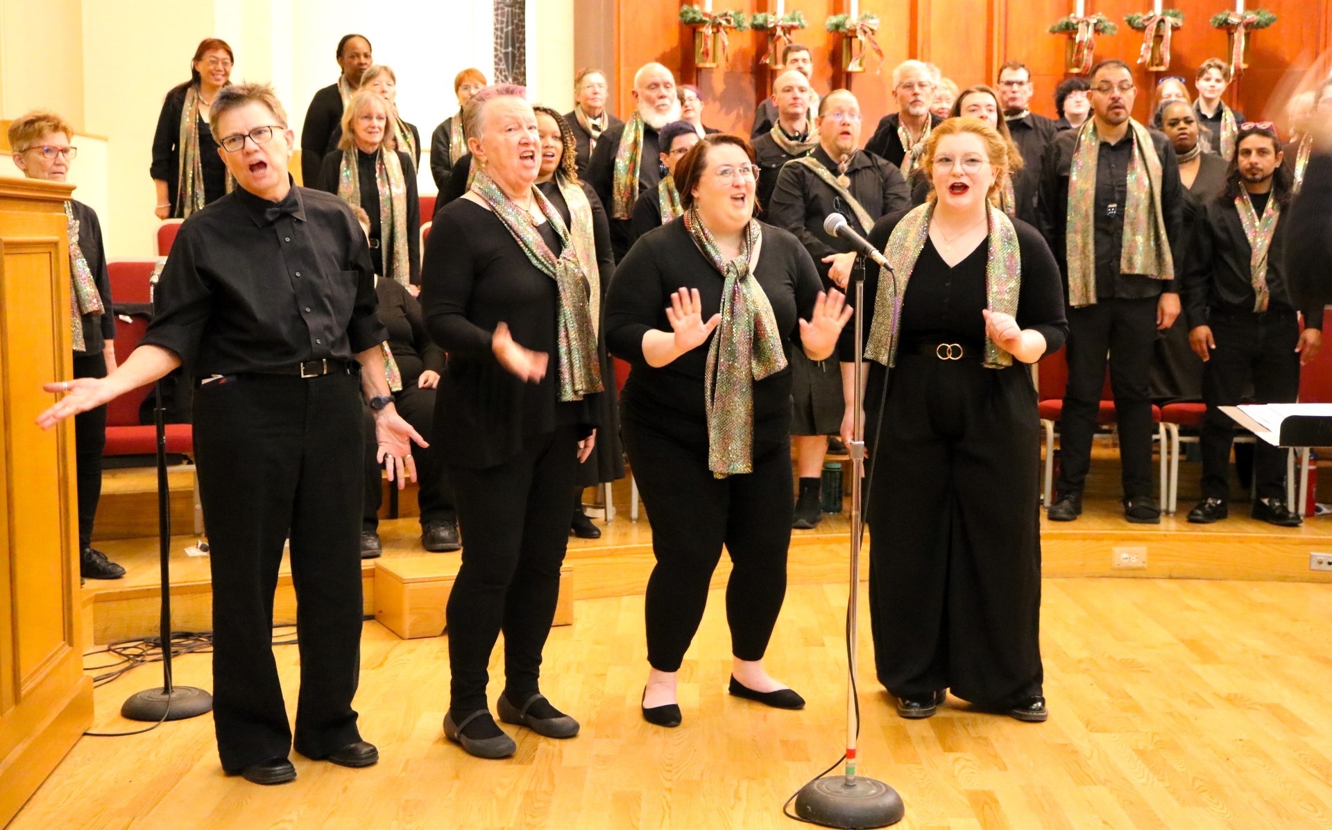 We aim to provide a digital document containing the lyrics to all of our songs as well as spoken remarks/speeches made during the concert, which can be accessed by scanning the QR code in our concert program (when available). There are also printed copies of the QR code at the check in table and at the front of the audience on both sides, whenever we have it available.